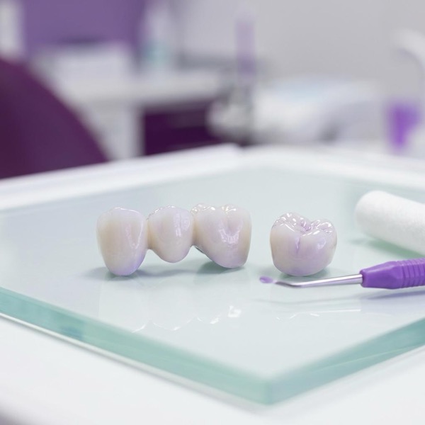 Custom-made caps and bridges to cover damaged teeth or fill gaps.